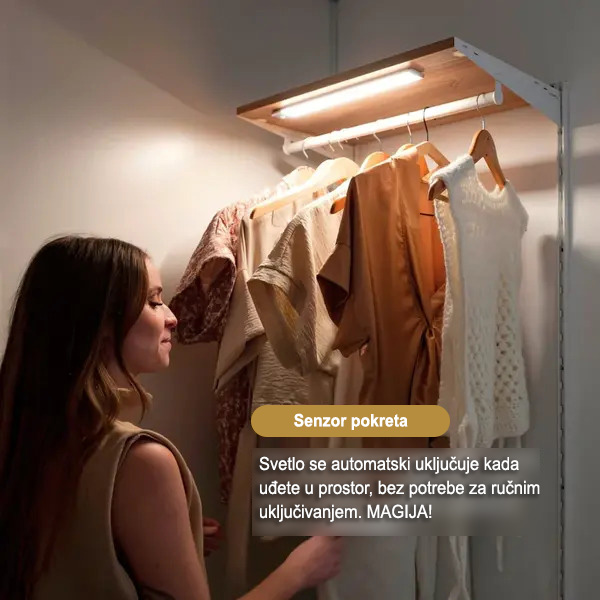 Da biste olakšali oblačenje, postavite ovo svetlo unutar ormara ili garderobera. Automatski se uključuje kada otvorite vrata, pomažući vam da pronađete odeću bez tumaranja po mraku.