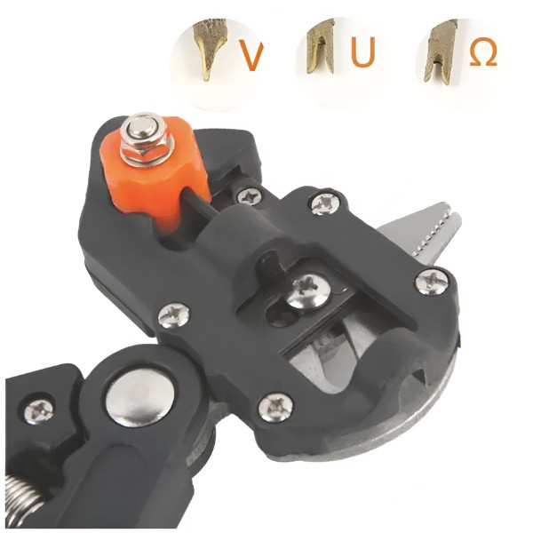 Ovaj alat sadrži 3 zamenska sečiva (V, U, Ω) koja omogućavaju izvođenje različitih vrsta rezova, čineći ga savršenim za razne zadatke orezivanja i kalemljenja.